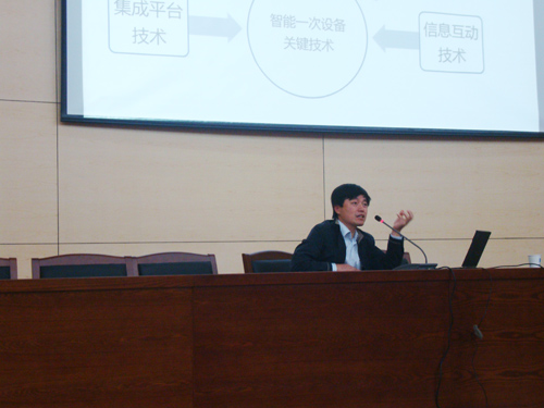 会谈后,唐总为我校师生作了“智能一次设备与电气设备状态在线监测”的学术报告。