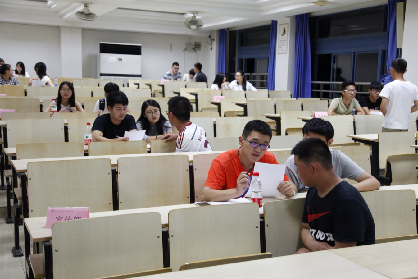 2015年9月9日晚七点,自动化学院学生会第一轮招新面试在教二-401举行。面试工作紧张有序、有条不紊地展开。面试现场,面对各部门面试官的提问,15级同学灵活应对,从容而自信,对所提出的问题认真作答。他们的言谈举止中流露出对学生会工作的真挚渴望及敢于表现自我的信心,展现出来良好的素质和修养,体现了当代大学生敢于挑战自我的信心和勇气。