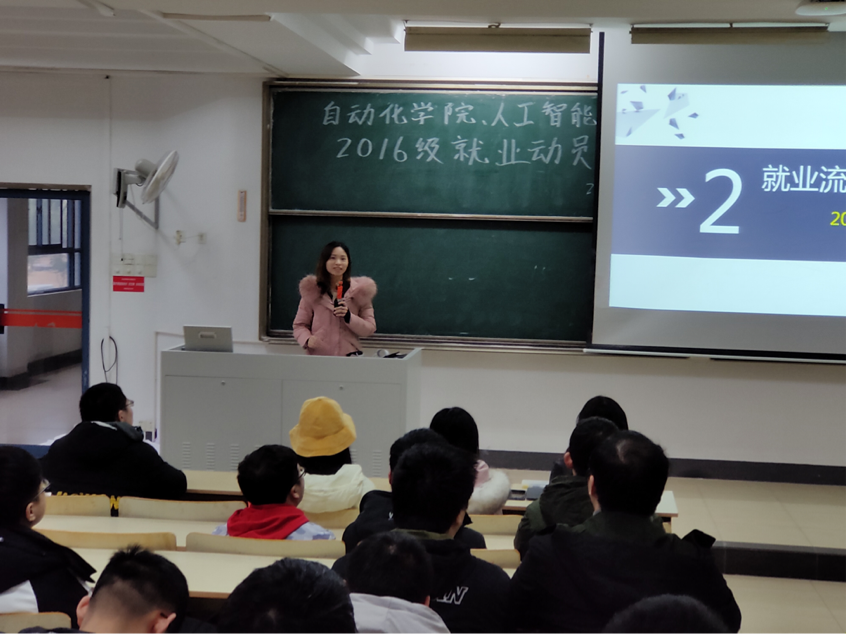 2020年1月6日下午15:20,自动化学院、人工智能学院在教2-201教室召开2020届毕业生就业再动员大会。自动化学院、人工智能学院党委副书记杜月林参加了本次会议,会议由2016级辅导员郑春春主持。