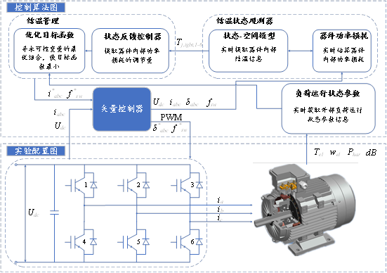 关键技术: (1) IGBT 状态-空间模型参数实时在线辨识:考虑到实际应用中对 IGBT 模块温度状态信息的时效性、准确性的内在需求,须对 IGBT 模块状态-空间模型的参数进行实时、在线辨识。然而,焊料层的疲劳损伤是一个十分复杂的过程,而且封装的 IGBT 模块为密闭结构,难以通过直接测量方式获取焊料层的疲劳损伤信息。因此,设计了基于外部传感器信息实时监测焊料层疲劳损伤进程,并提取焊料层的损伤边界信息,基于损伤信息及器件线性热特性原理对模型参数进行在线辨识。 (2) 基于有限时间有界理论的 IGBT 结温控制策略:考虑到外部负荷的随机性,通常只须确保 IGBT 结温处于某个安全可控的范围以内。而传统的控制方法中,一般要求设计控制器使状态变量收敛于某个特定的值,这对 IGBT 结温控制而言显然代价过高,且不易实现。因此,引入了有限时间有界理论,使 IGBT 结温处于设定的安全范围内,实现IGBT结温的精确控制。 (3) IGBT 可控变量与外部负荷技术指标关系的确定:变流器系统与外部负荷的交互过程十分复杂,某个可控变量的调整可能影响多个外部负荷技术指标,而多个可控变量的调整可能影响同一个外部负荷技术指标,造成可控变量与外部负荷技术指标关系错综复杂。此外,外部负荷技术指标的重要性也有区别,在进行结温控制综合优化时不能按照同一尺度要求。因此,提出了可控变量与外部负荷技术指标的关系函数,设计了外部负荷技术指标的优先级函数,可实现结温控制综合优化。