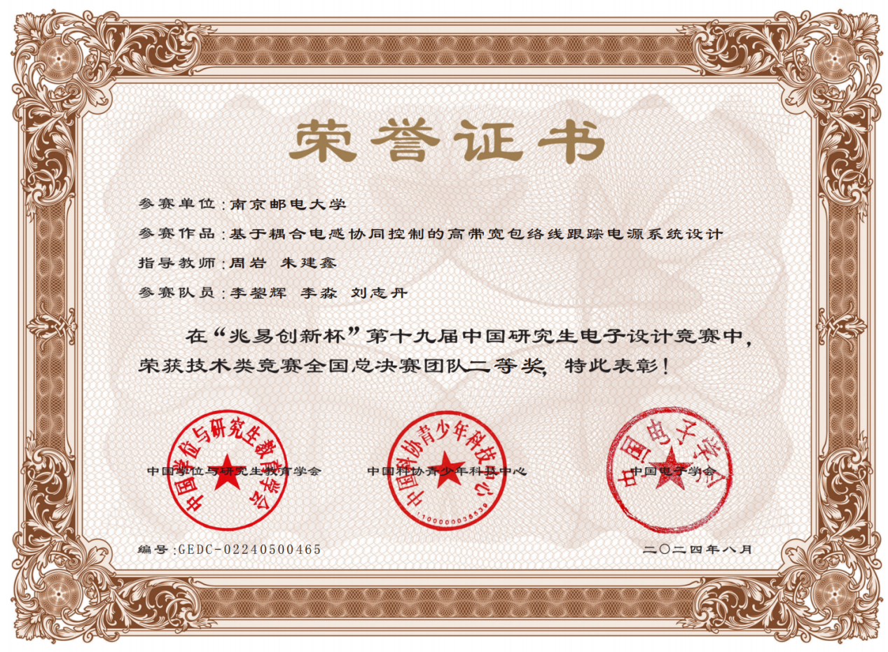 近期,“兆易创新杯”第十九届中国研究生电子设计竞赛全国总决赛在无锡举办。由yl23411永利官网周岩教授、朱建鑫博士指导的李鋆辉、李淼等研究生团队获得华为6G专向赛技术竞赛国家级二等奖,为yl23411永利官网学子在该赛事中取得的最好成绩。
